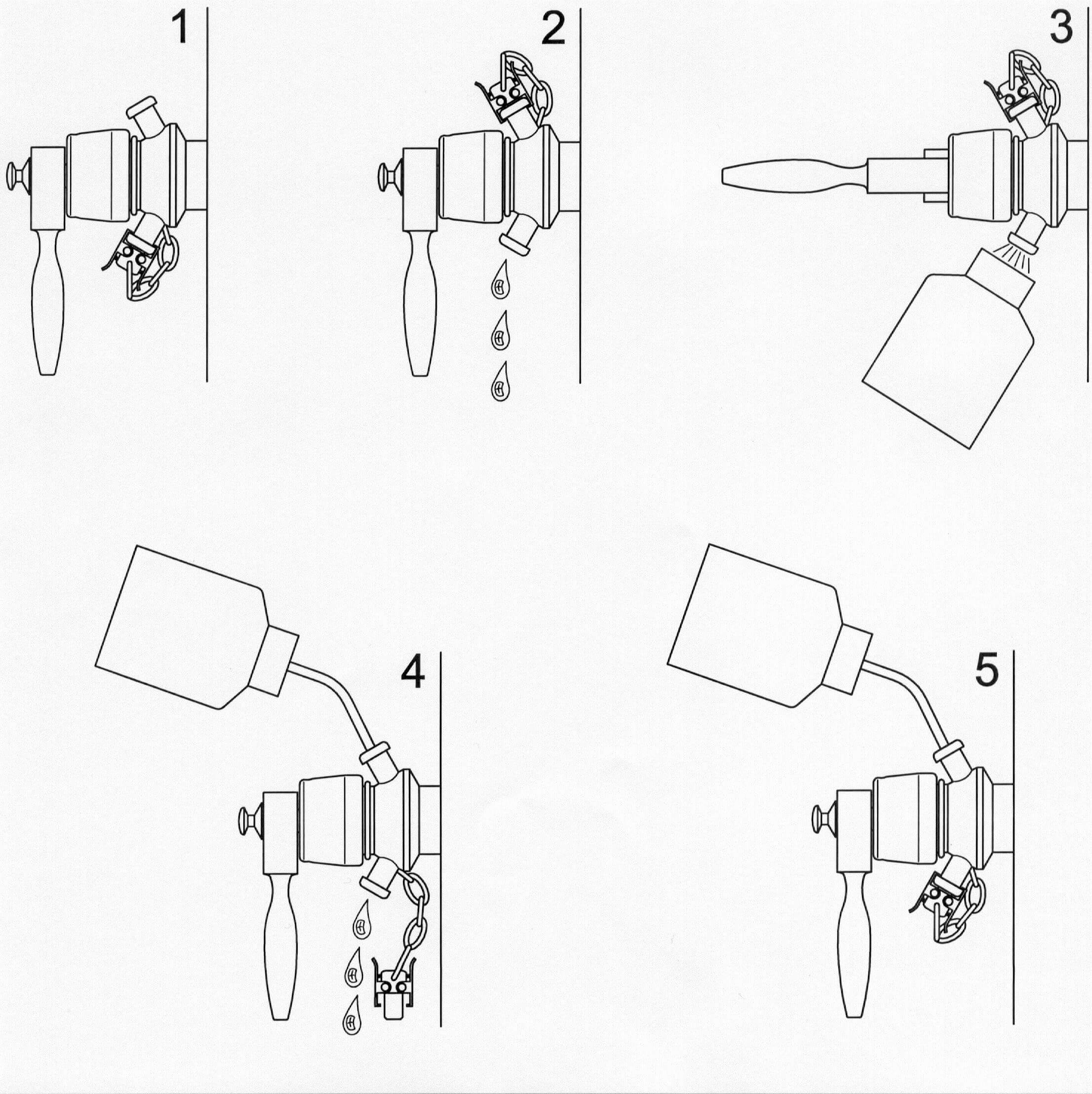 The in-line sampling valve is available with three different types of connection: tank, pipe and threaded. They operate on the same principle. Before the valve is opened, the closure should be placed on the upper hose connection. When the handle is turned to the horizontal position the sample starts to flow through the lower outlet. When the handle is turned back to the vertical position the valve shuts and the handle can be removed if required. Aseptic sampling can be taken using a special valve type with microport. If you remove the red cap, you can insert a hypodermic needle through a central channel into the membrane to take an aseptic sampling with the valve in the shut position. After sampling, flush the valve with water or alcohol. The aseptic sampling valve can be sterilized using alcohol or steam.